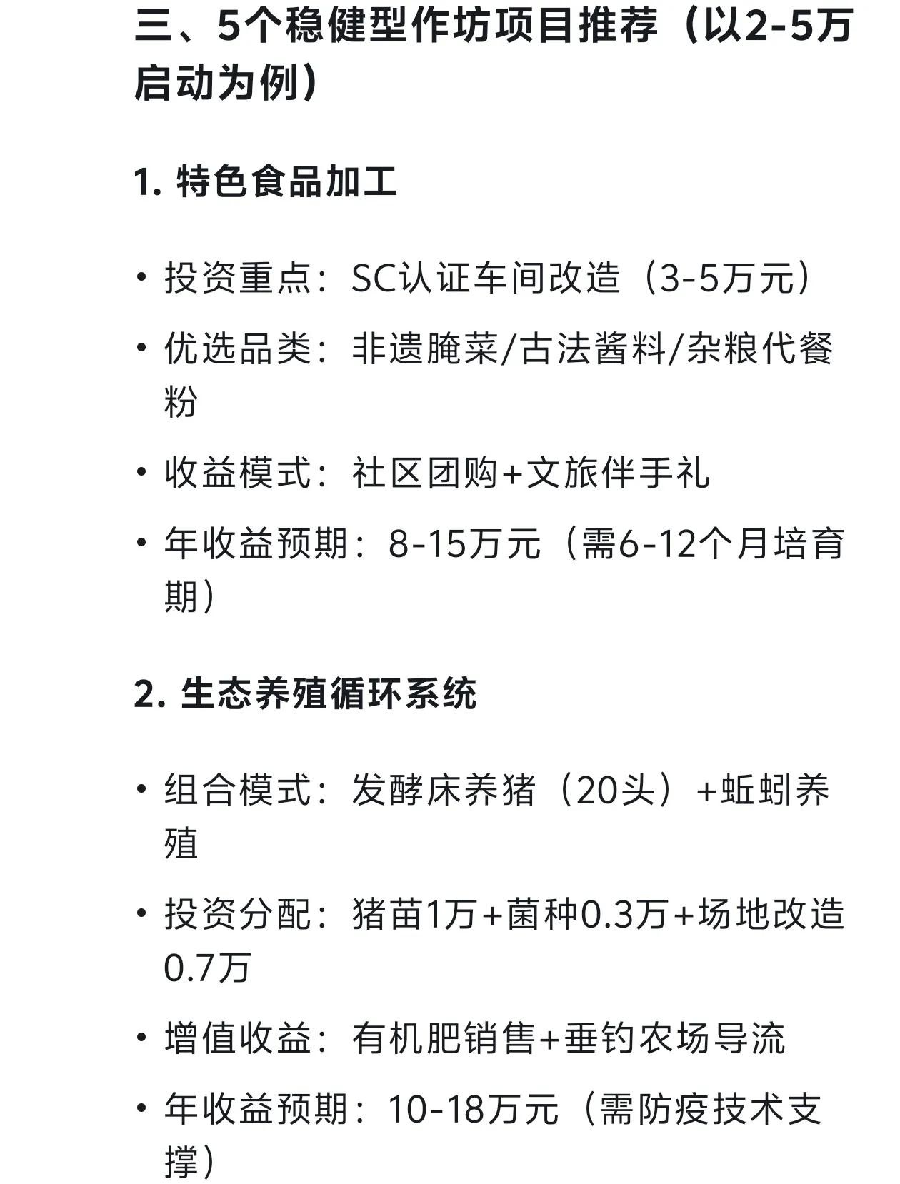 DeepSeek建议:这5个农村小作坊项目,2万投资轻松年入30万