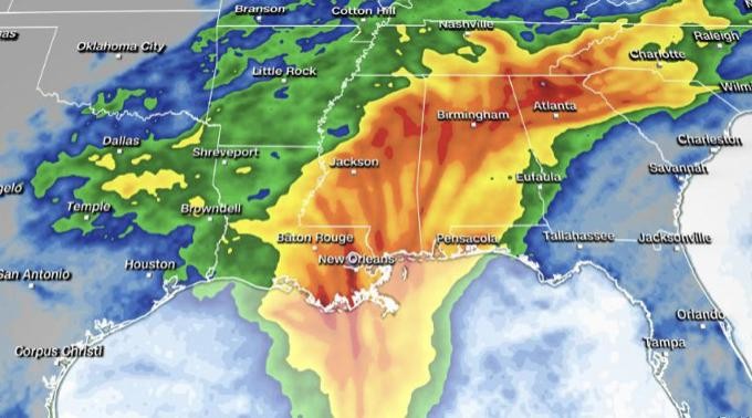 美国国家气象局发出预警称,美国南部各州,包括路易斯安那州、密西西比州、阿拉巴马州、佐治亚州和佛罗里达州,预计将出现强风、大雨,以及水位上升造成的洪水现象。(央视记者 刘骁骞)
