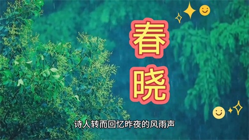 ·首句:“春眠不觉晓”。诗人以春天早晨自己一觉醒来为起点,表达了在春天里睡眠的香甜与满足。不知不觉天已大亮,流露出诗人对朝阳明媚的喜爱。
