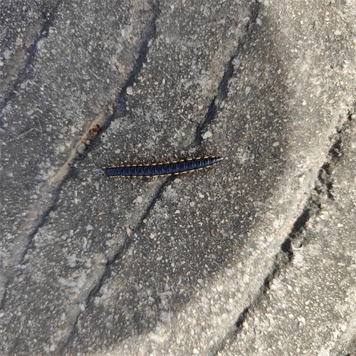 今天有两个人同时问起这个虫,分别是下面两个图片,很是巧合,以前也有人问过。这种虫很常见,学名马陆,也称千足虫。跟蜈蚣相似,都是节肢动物,多足门类。每一节都有足一对,多的有几百只脚,最大的千足虫是非洲巨马陆,有30多厘米长。喜腐烂阴暗潮湿的地方,受到惊扰卷曲成盘状,草坪室内均有发现,在一些货物种也常见,一年繁殖一次,寿命1年。马陆分泌一种毒臭液,所以气味难闻,误食会导致过敏水肿。遇到接触马陆,立即用肥皂水或者清水清洗,涂抹一些软膏减缓过敏症状。跟蜈蚣区别,马陆长圆形,黑色和黄色相间,头部一对触角,植食性为主。蜈蚣,肉食性,身体扁平。