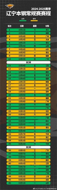 CBA新赛季赛程出炉!辽宁本钢队常规赛赛程→