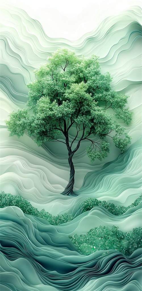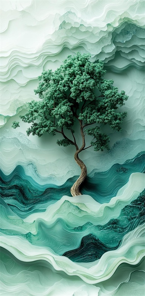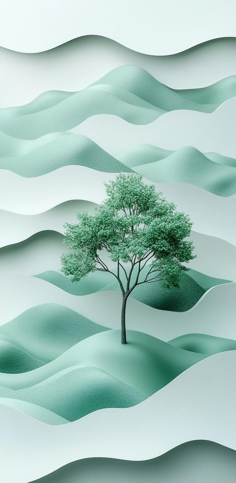 空灵静谧的绿色护眼手机壁纸:心之绿洲