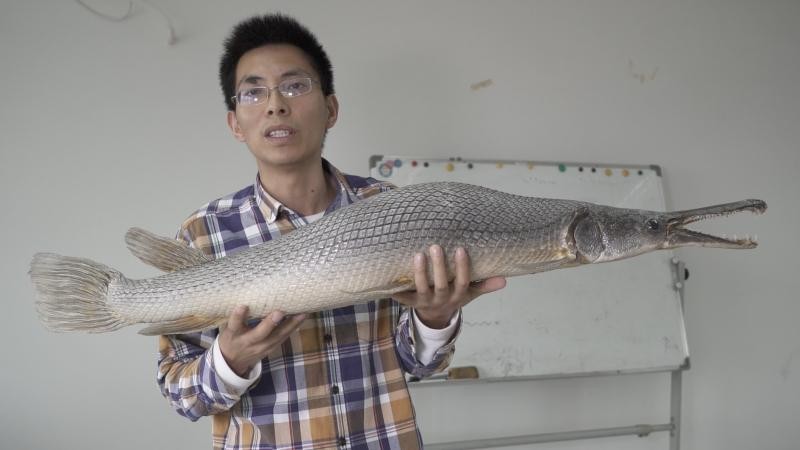 年初在广州白云湖捕获的两条“水怪” 鳄雀鳝,目前已经被制作成标本。暂时存放在珠江水产研究所,将来会用做科普研究用途。最大那条“驼背” 特征的鳄雀鳝腰背拱起,体长1.2米,重20斤,身体上仍残留保安用钢叉刺杀时留下的伤痕。专家呼吁对外来物种引进的立法,加强外来物种的科普宣传减少人为的放生。 视频:陈志刚 编辑:陈蓓蕾