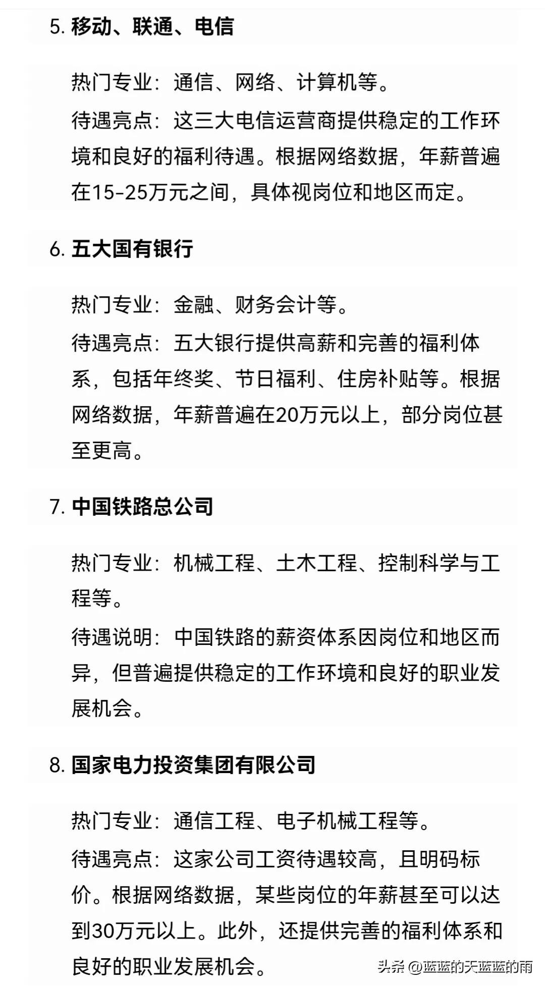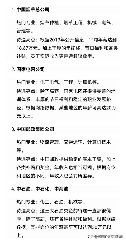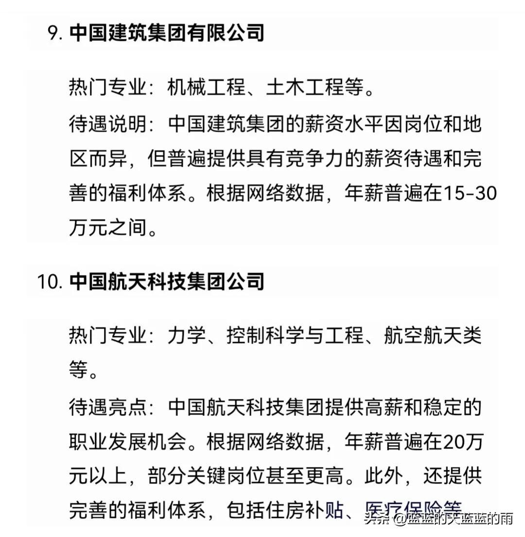 薪资待遇最好的10家央国企名单!快来了解~
