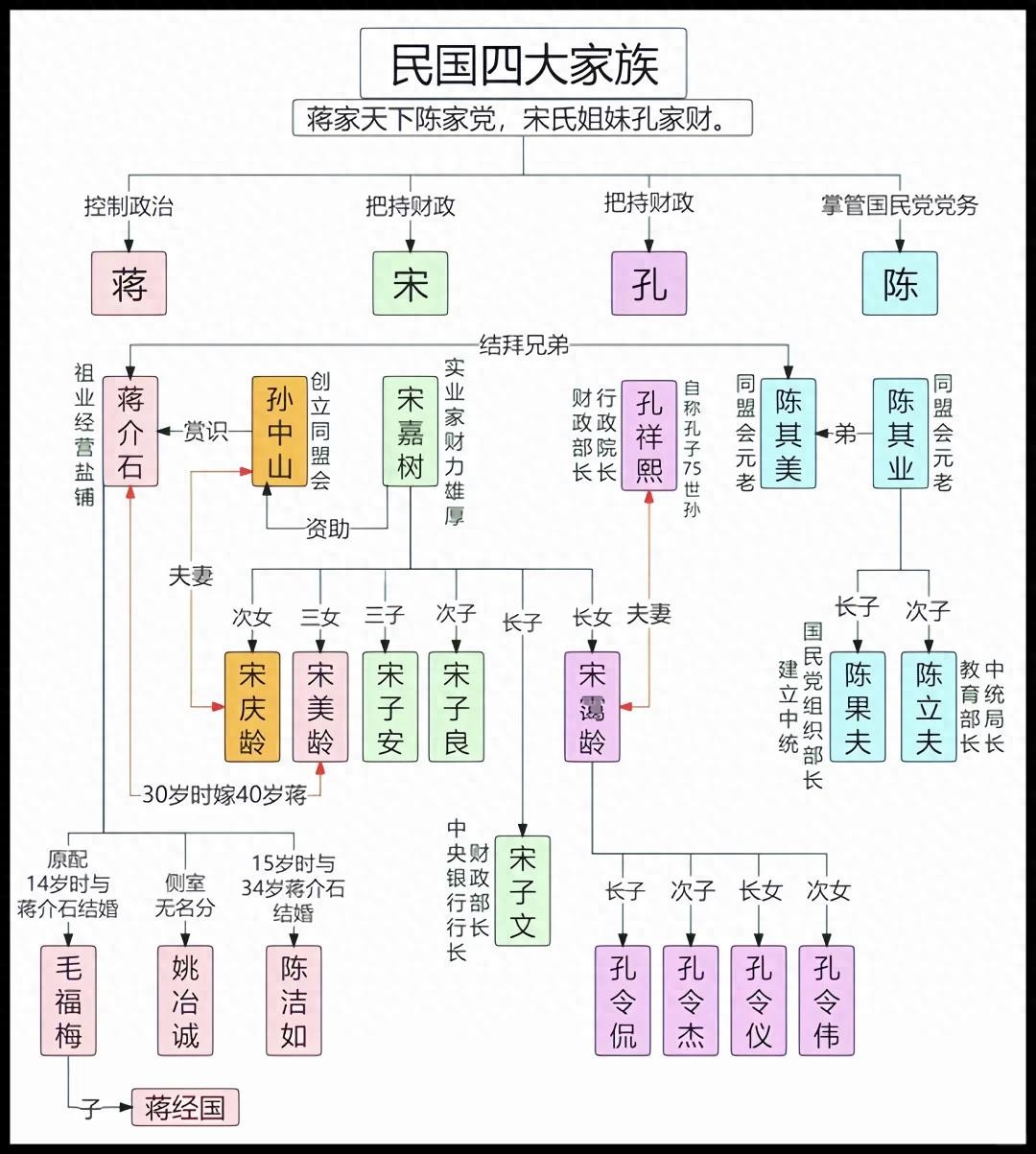 一张图带你认识民国四大家族,从掌握最高权力和经济命脉到凋零