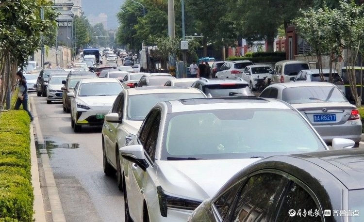 济南千佛山七夕相亲大会引来滚滚客流,景区门口人员车辆排队