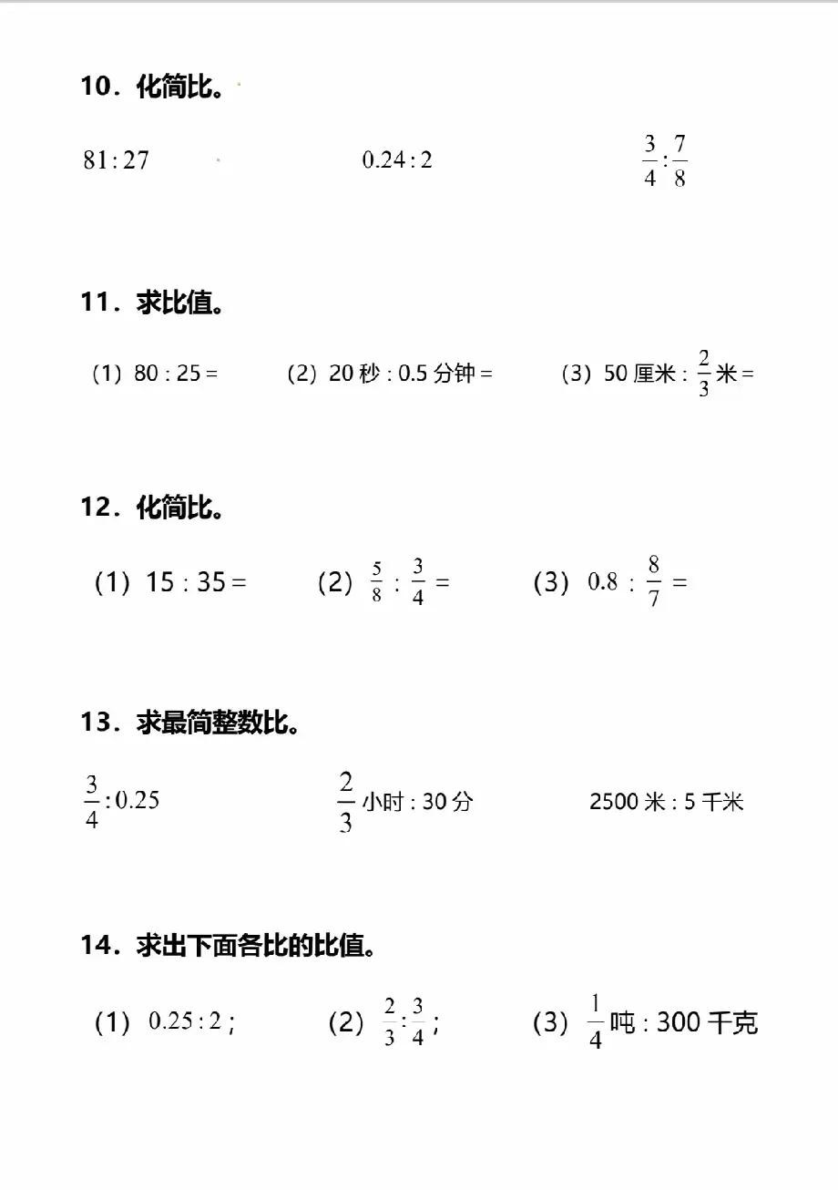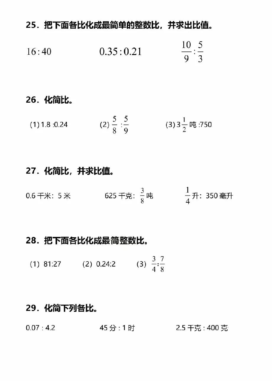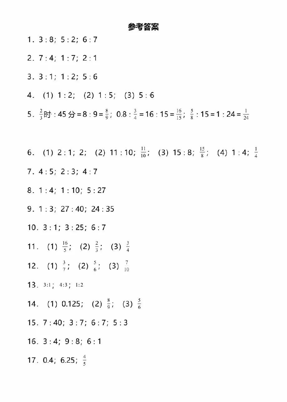 六年级上册数学化简比和求比值专项训练题含答案
