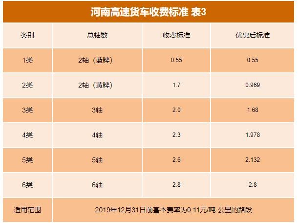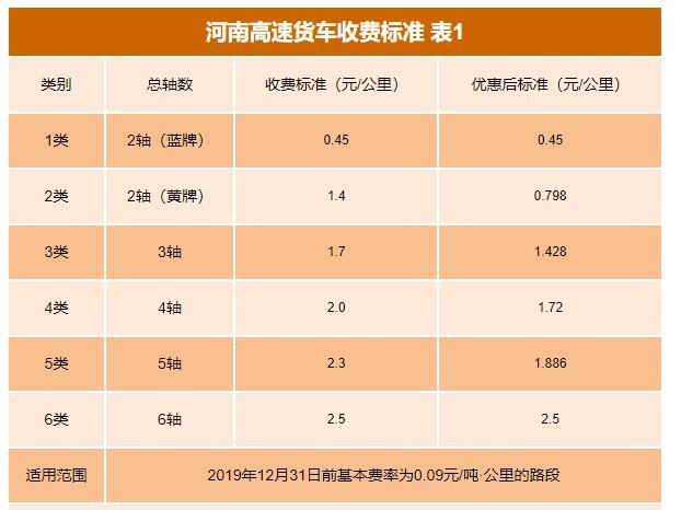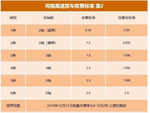 河南高速2020收费一览表