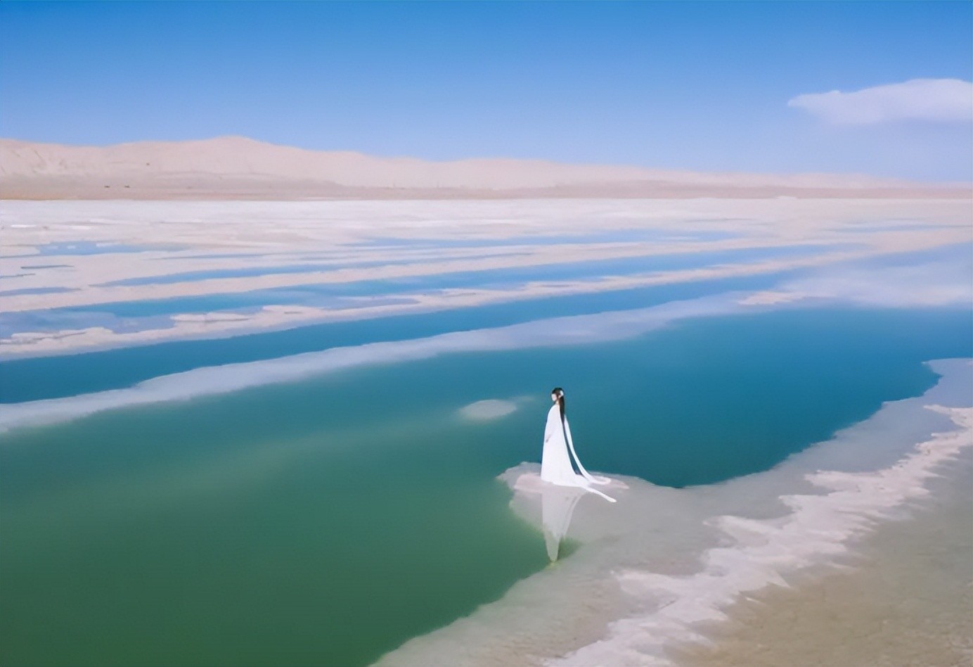 说到茫崖的景点,不得不提的必须有翡翠湖。这里需要声明的是,茫崖的翡翠湖和大柴旦的翡翠湖可是两码事哦。茫崖的翡翠湖是一座地道的人工盐湖,它虽然不及大柴旦翡翠湖那样名气在外,但见过它的人都会认为它更美丽。茫崖翡翠湖面积达30多平方公里,美轮美奂,犹如一颗镶嵌在戈壁中的翡翠一般,让人来到这里,便仿佛踏入“天空之境”。