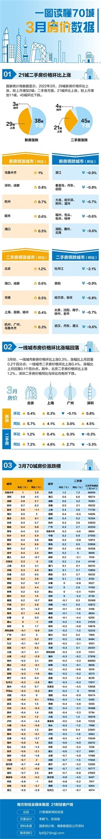 4月15日,国家统计局公布2022年3月份70城房价数据显示: