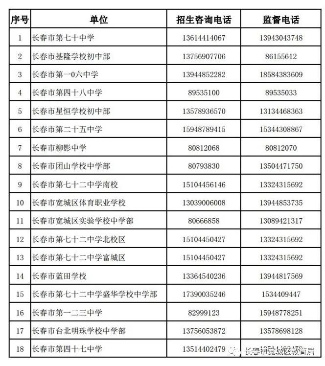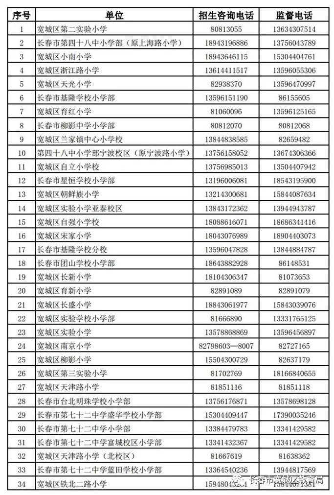 为更好的开展义务教育阳光招生工作,现将宽城区中小学校的招生咨询及监督举报电话公布如下: