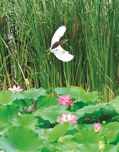 近日,城市中心公园荷花池内飞来两只池鹭,它们在水中嬉戏捕食,吸引了不少市民和摄影爱好者拍照、观赏。