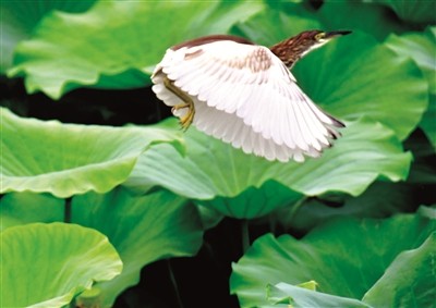 池鹭系典型涉禽类,通常栖息于稻田、池塘、湖泊、水库和沼泽湿地等水域,以鱼类、蛙、昆虫为食,是国家一级重点保护动物。