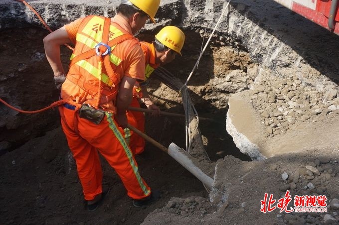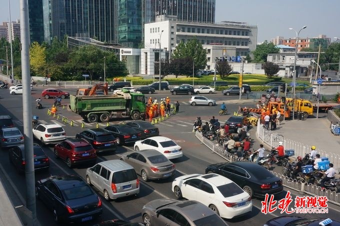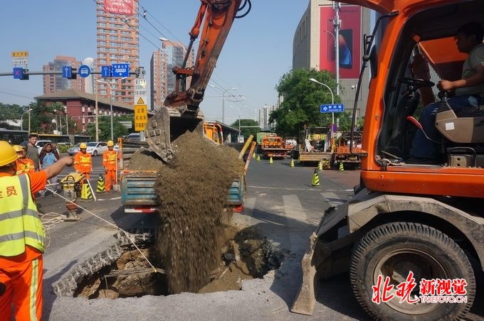 2018年5月 25日讯,今天下午4点,记者从京广桥塌陷路面处置现场了解到,大坑回填工作已经启动,抢修单位将在今天晚高峰前完成路面临时处置工作,以确保道路正常通行。公联公司现场抢修负责人证实,此前京广桥地区确发生多起路面塌陷事故,原因与地面沉降,管道受损有关。但根据勘察,此次塌陷区内管道没有受损,塌陷原因尚未确定。