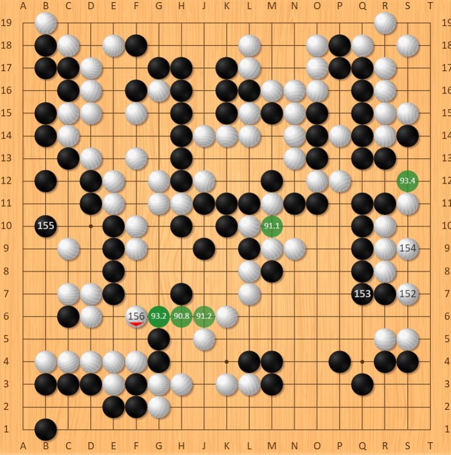 序盘左上布局中,黑棋的芮乃伟便收获满满,从而奠定了局面优势。在中后盘激战中,芮乃伟始终更胜一筹,双方激战至150余手之后,芮乃伟在大优势之下超时告负!