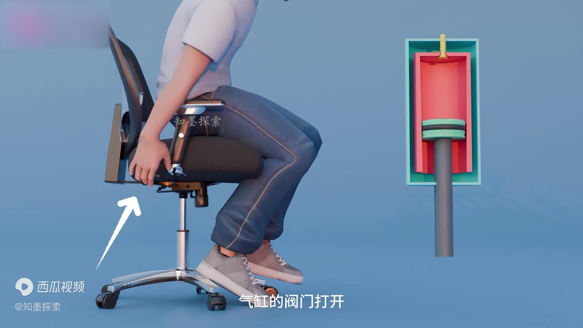 为何电脑椅子会爆炸?关键在于椅子下方的气压杆,其用于调节椅子的升降。当拉动椅子下方的控制杆时,气缸的阀门打开,内部流动的高压气体推动活塞向上移动,进而改变椅子的高度。