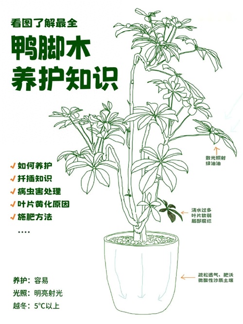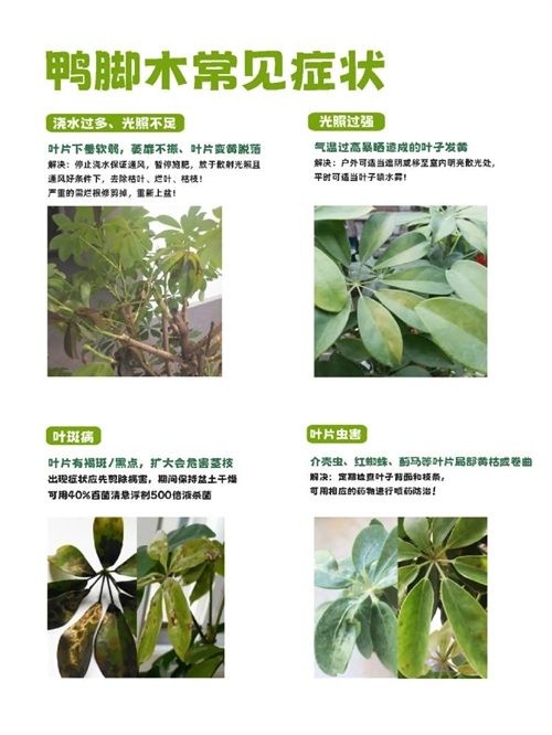 ①、养鸭脚木环境要通风良好,在合理的给予光照,可以大大减少它生病虫害。