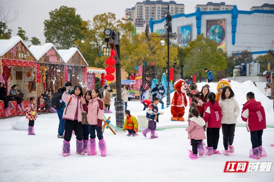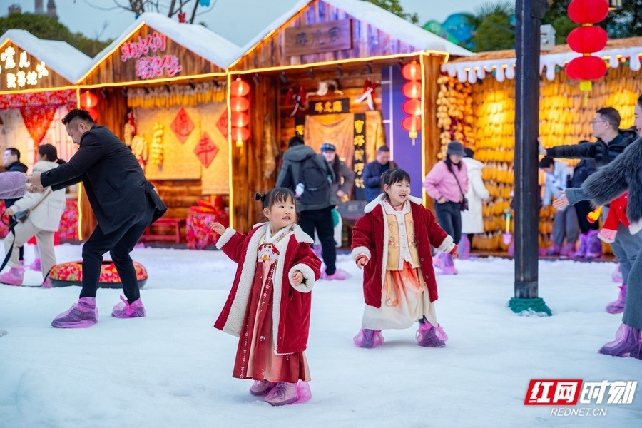 正月初一,株洲方特打造的2000平南国雪乡正式迎客。