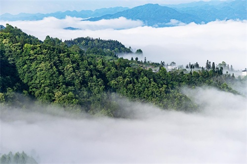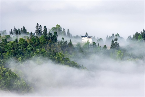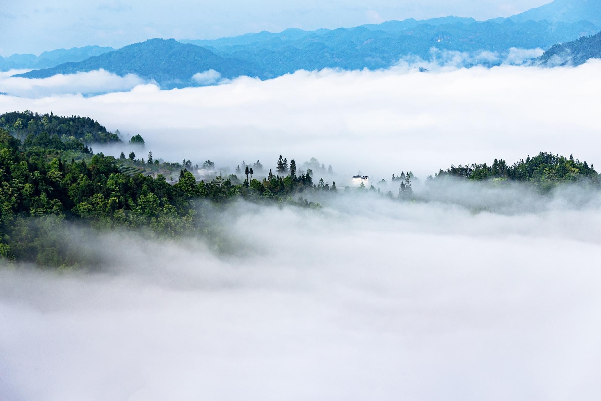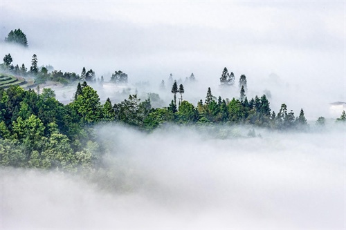 清晨的凉风垭在云雾的笼罩下显得格外仙气缭绕,像一幅有意境的山水画。