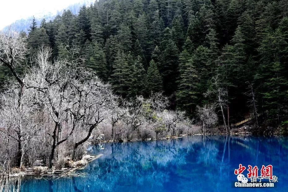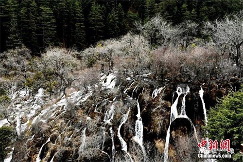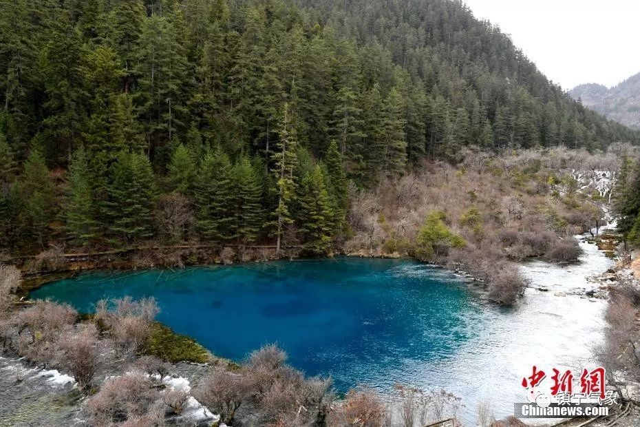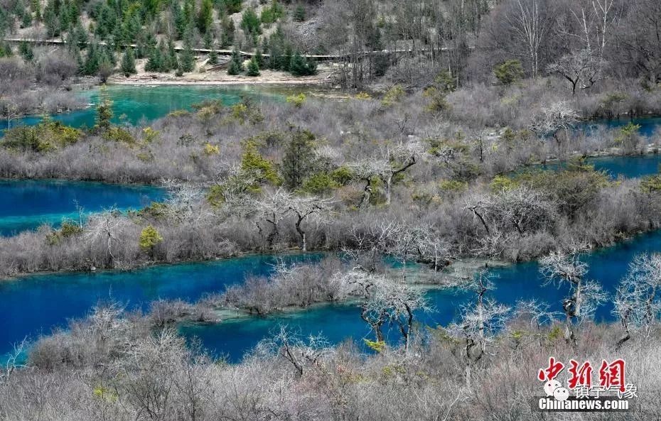3月25日,四川九寨沟景区风光。春天的九寨沟,冰雪已渐渐消融,美景如画。