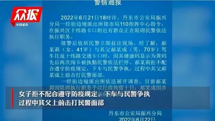 #丹东##丹东父女黄码看病被拦后袭警##丹东袭警事件##