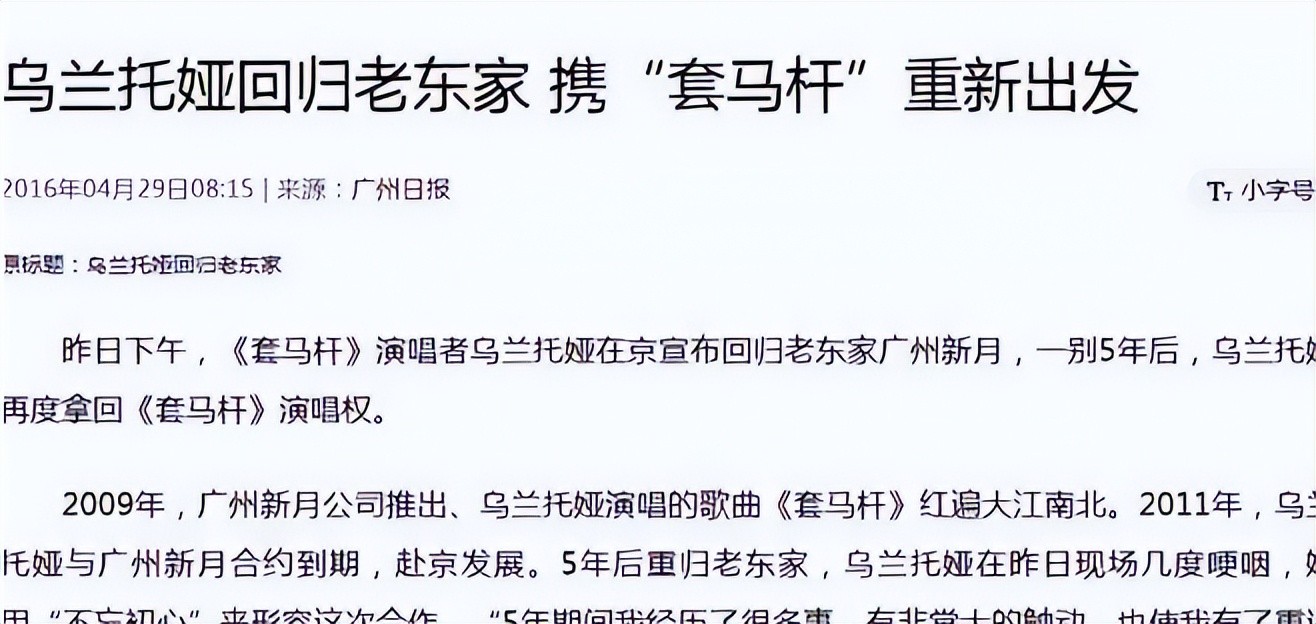 乌兰图雅离开了新月公司,乌兰托娅则再次与老东家签署了合同,并拿到了《套马杆》的演唱权。