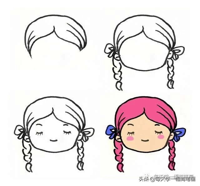 2.画出脸部轮廓和麻花辫;