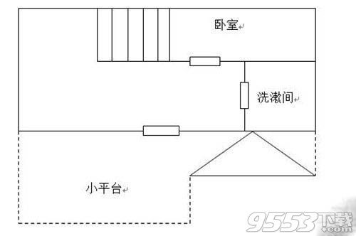 图中长方形代表门,三角形代表的是二次的弧形窗的屋顶,屋顶的后面放两个跟屋顶匹配的斜面墙,当然也可以根据自己喜欢的来。