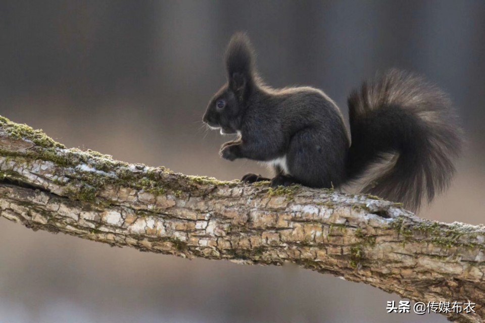 松鼠有一个共同的特征,就是尾巴大,像个扫帚,黑松鼠也不例外。摄影:徐庆新