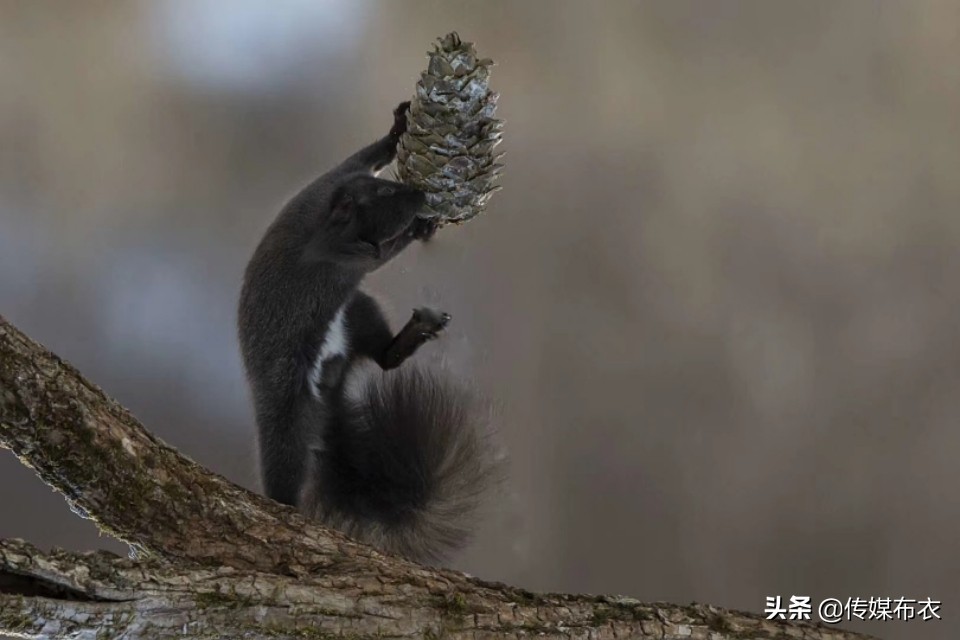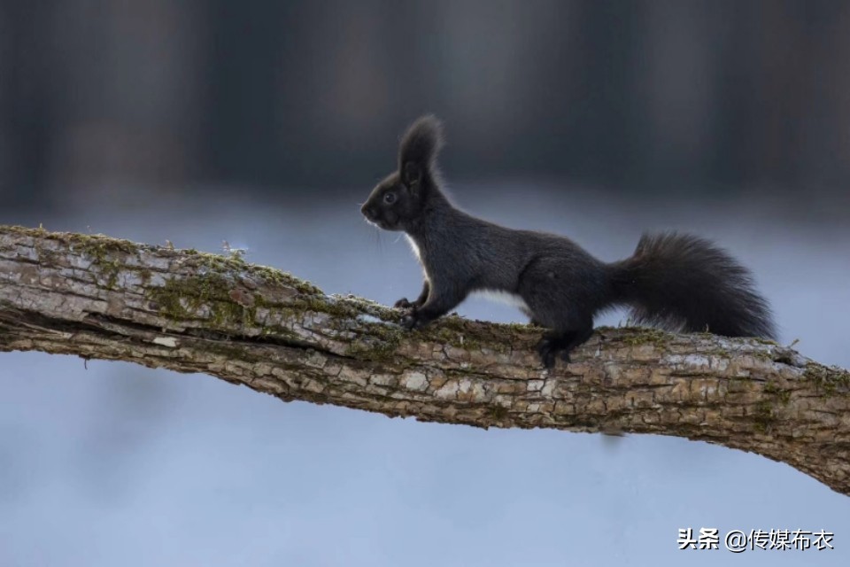这只松鼠,穿件黑貂;上窜下跳,不停作妖。摄影:徐庆新