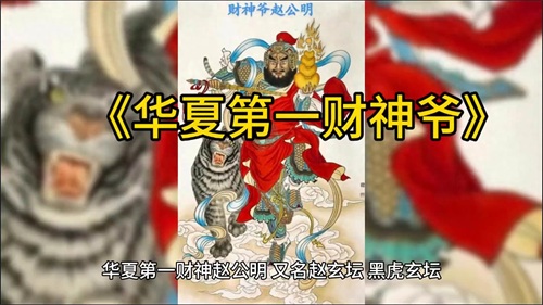 华夏第一财神赵公明又名赵玄坛、黑虎玄坛,道教所信奉的财神传说。他能以役雷驭电、除瘟禳灾、主持公道。赵公明为秦人在终南山得道,戴铁冠、执铁鞭、黑面浓须、骑黑虎,因护张天师丹炉有功,封正一玄坛元帅,能驱雷役电、呼风唤雨、除瘟禳灾、买卖求财、宜利和合。其职本掌雷部星宿,为道教一执法天神。
