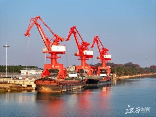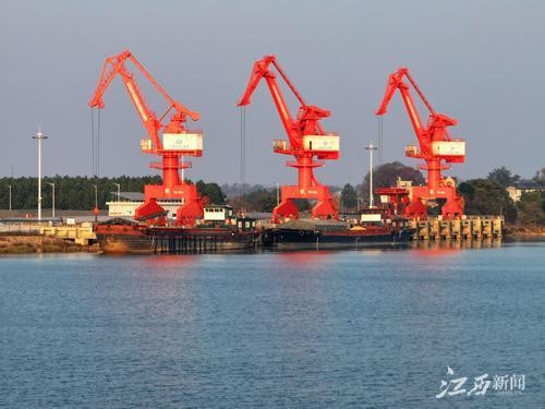 1月2日,江西省港口集团泰和沿溪综合货运码头正在装卸货物。近年来,泰和县利用赣江黄金水道积极发展内河航运,推动水上交通物流发展。特约通讯员 邓和平摄