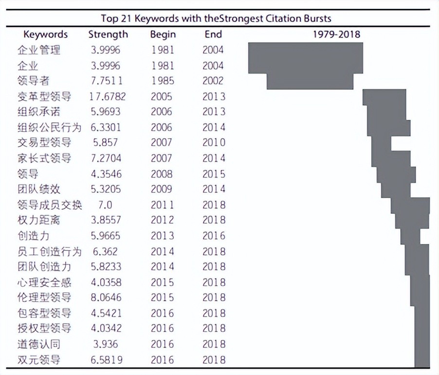 示例文献:杨朦晰,陈万思,周卿钰,杨百寅.中国情境下领导力研究知识图谱与演进:1949-2018年题名文献计量[J].南开管理评论,2019,22(04):80-94.