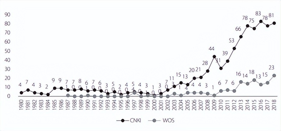 ▲该领域研究论文在国际顶级期刊和国内重要期刊的年度分布