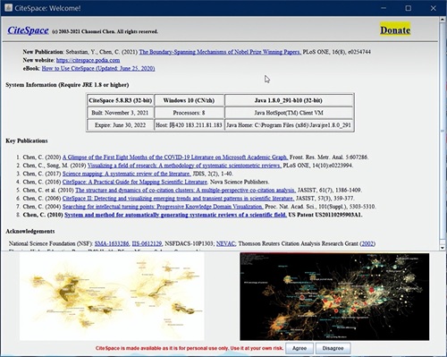 CiteSpace版本更新后,老版本就不能继续使用,而新老版本不同图谱之间参数有差异,不利于结果的分析,建议大家下载最新版本并尽快分析出结果。同时由于最新版本已经没有了时区图功能,取而代之的是时间线图功能,所以如果有同学想使用旧版本,可以先将计算机日期手动调整到旧版本有效期内,再运行旧版本软件。