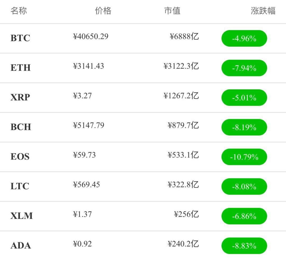 以下截图为北京时间17点30分,市值排名前八的主流数字货币的实时行情。(截图来自兔链财经)