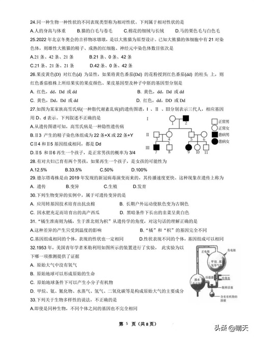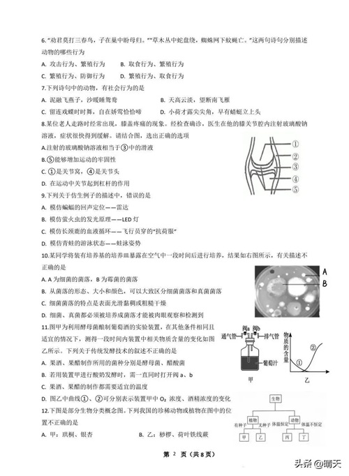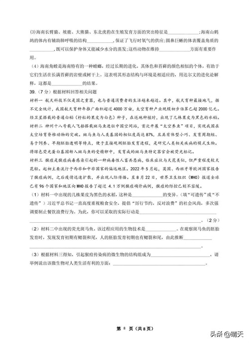 通用版八年级上册生物期末试题(含答案)