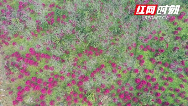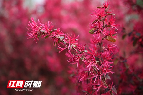 红网时刻永州3月16日讯(通讯员 蒋军君)日前,湖南省永州市新田县三井镇洞心村近百亩红继木花竞相盛开,形成芬芳的红色海洋,放眼望去,美不胜收,甚是壮观。红继木花团簇拥,红霞映天,好一派争奇斗艳的景象,俨然一幅乡村美丽的画卷。