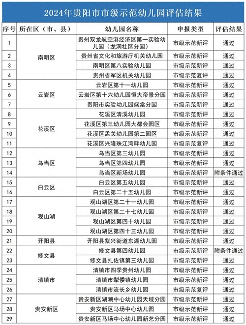 29所通过!2024年贵阳市市级示范幼儿园评估结果公示