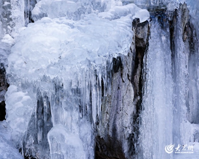 冬日的泰山彩石溪,美成了童话里的冰雪王国。受持续降温天气影响,昔日流水潺潺的鹦鹉崖瀑布凝结成冰挂、冰瀑悬挂在陡峭崖壁之上,如琉璃般晶莹剔透。溪谷中铺满了冰柱、冰凌,千姿百态,晶莹剔透,让人恍惚间宛若置身梦幻中。
