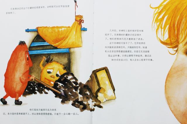 他们的生活很舒适,每天都会有好吃的东西自动送上门来。他们的储藏室里有巧克力,水龙头里流着他们最爱喝的“可可可乐”。但是,他们还在努力地干活,因为他们梦想着改建整条牙齿大街:把每颗牙齿都变成一座房子,有露台,有游泳池,还有老板的办公室……但是有一天,牙齿大街突然被扫荡一空!到底出了什么事呢?两个小家伙的梦想还能实现吗?这本特别的图画书会带你一起经历牙齿大街意想不到的故事。