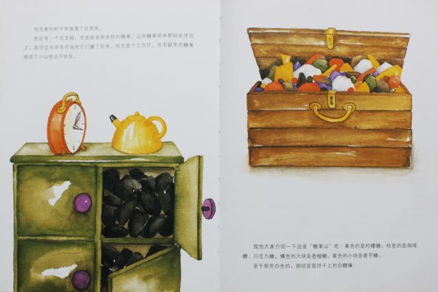 他还有一个百宝箱,里面是各种各样的糖果。这些糖果原来都粘在牙齿上,是哈克辛辛苦苦地把它们搬了回来。哈克是个工作狂,百宝箱里的糖果堆成了小山他还不休息。