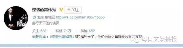 不仅身高高,最近高伟光的槽点也挺高,他的演技被网友吐槽是全剧的笑点担当,网友还找到了高伟光的微博,名字叫“深情的高伟光”。