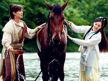 她和杨旭文饰演的郭靖在一起洗马、互相洒水、开心快乐