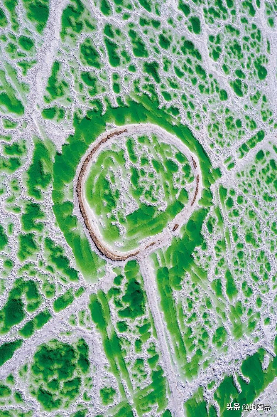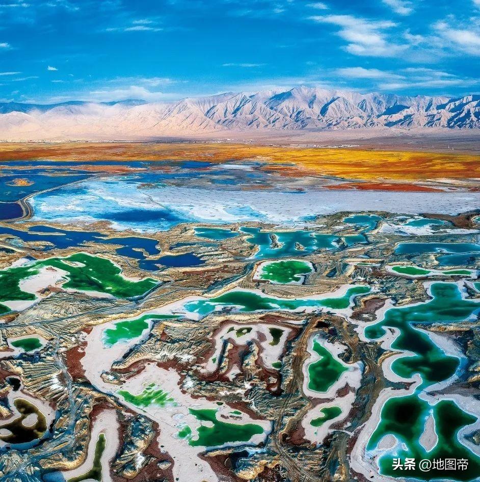 大柴旦翡翠湖位于柴达木盆地东北部,面积15平方公里,属硫酸镁亚型盐湖,盐床由淡青、翠绿以及深蓝的湖水辉映交替、晶莹剔透,称为“大地调色盘”。