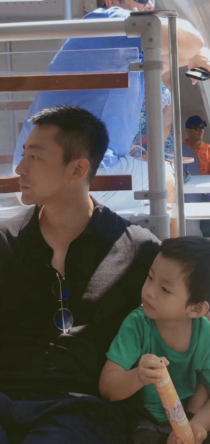 儿子和爸爸应该是去过暑假了,汪小菲穿着休闲黑色上衣搭配深色系西装很好的讲儿子保护起来。儿子的摸样长得更像妈妈一些。