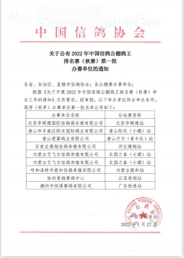 成立至今,唐山阳光国际赛鸽公棚(小棚)本着以鸽为本、鸽友第一为宗旨,以实际行动深得广大鸽友的信任和支持。今年,唐山阳光国际赛鸽公棚(小棚)秋赛首秀,就以高规格、高标准入行,成为中国信鸽公棚鸽王排名赛的办赛单位之一,吸引全国各地豪强集结优质赛鸽踊跃报名。