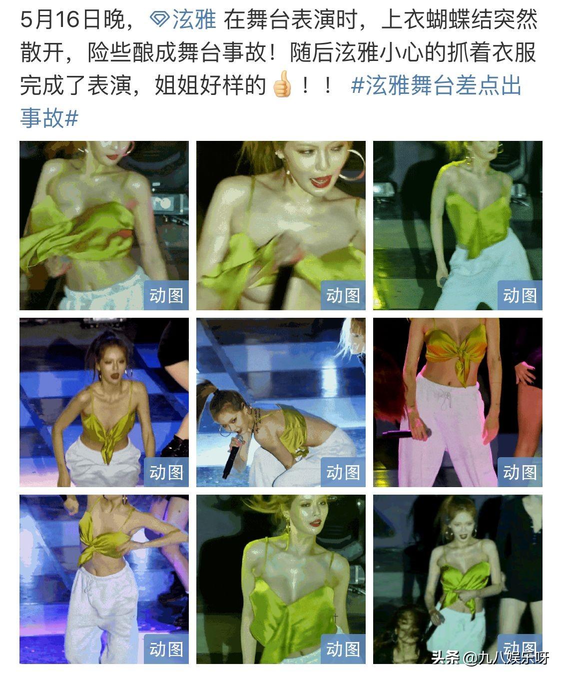 泫雅险些发生舞台事故,蝴蝶结突然散开,只能抓着衣服完成表演