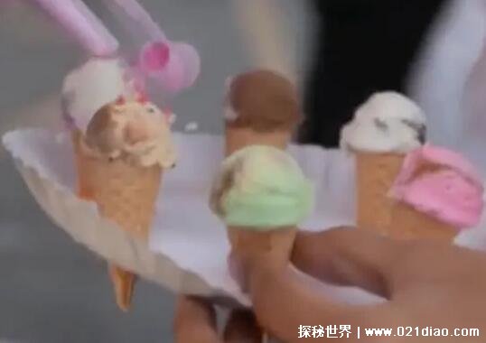 这个超迷你的冰淇淋虽然小,但是该有的脆皮蛋筒,冰淇淋球皆有,其实跟我们买的普通冰淇淋并没有太大的区别,只是看起来太迷你了,很多人表示自己一口能吃好几个,并且价格也不贵,一份是6块钱。当然这不是一个的价钱,而是6份。一个托盘上面插着6个迷你冰淇淋……