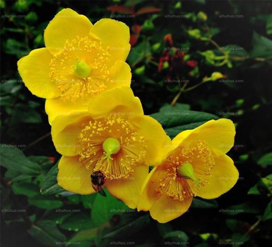 三是花单生枝端或成聚伞花序,花朵直径5公分左右,萼片5个,卵圆形,花瓣5个,近圆形,金黄色,雄蕊多数,连合成5束,短于花瓣,6-7月;